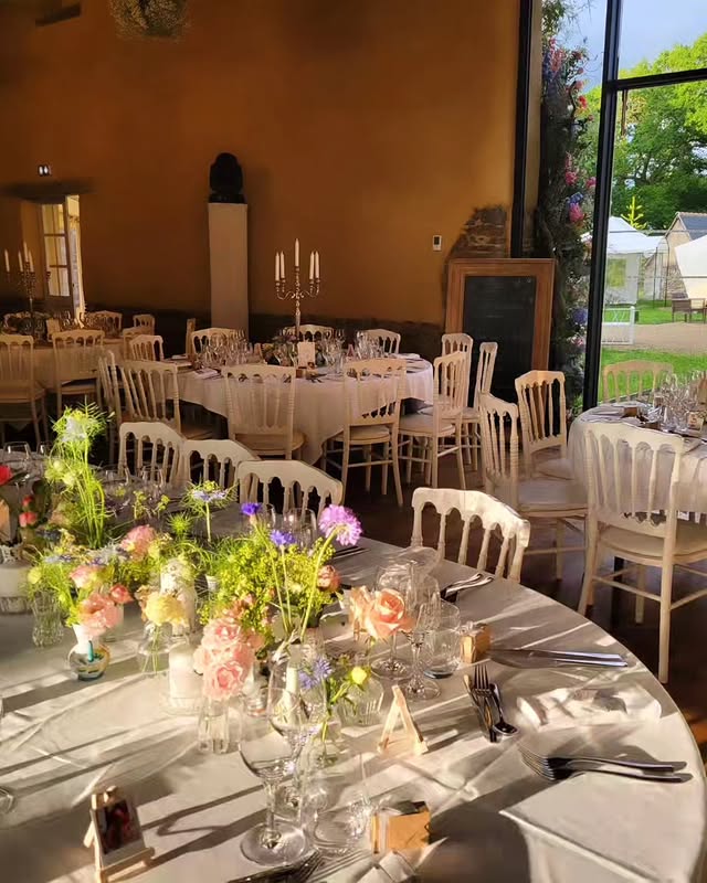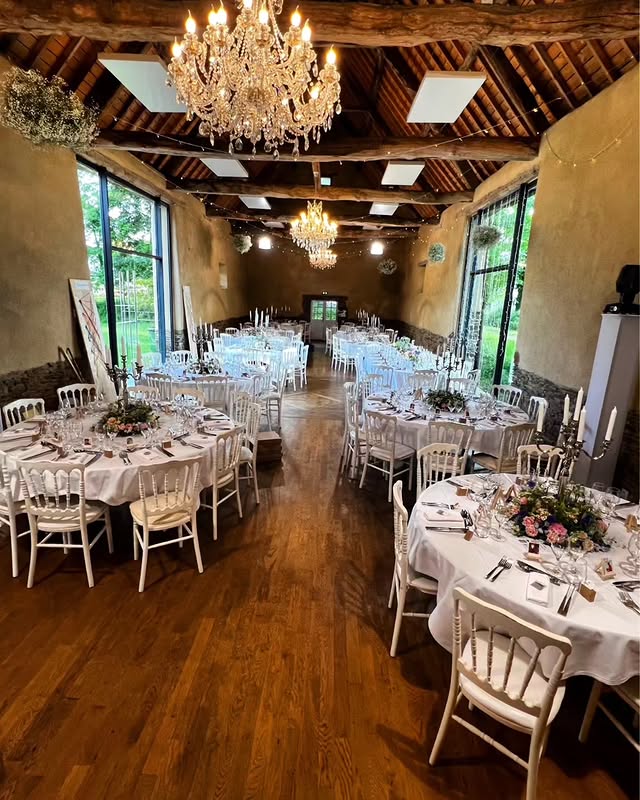 Notre offre porte sur l’ensemble du domaine (mobilier compris) privatisé pour la réception pour le weekend avec mise à disposition des salles le vendredi (8h – 20h) pour la décoration et le dressage des tables.